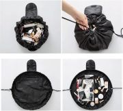 Это очень удачное и инновационное решение в реалиях современного мира, когда каждая минута на счету, вы просто развязываете косметичку, и перед вами оказывается все содержимое: средства для макияжа и косметика.