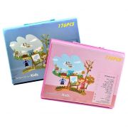 Набор для рисования со складным мольбертом в чемоданчике, 176 предметов (розовый)