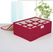 Кофр разделен на 24 вместительные ячейки, благодаря им вещи удобно складывать и доставать. Подходит для хранения носков и нижнего белья. После заполнения органайзера бельем, его можно закрыть крышкой на липучке, так вещи не будут пылиться.