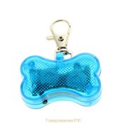 Светодиодный брелок-адресник для собак Косточка (синий)